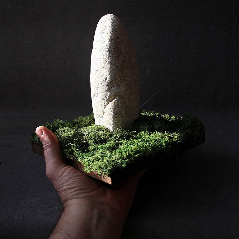 | Il pourrait y en avoir d'autres, dans l'avenir, car ce motif fait bien partie de mon environnement culturel et historique, vivant en Bretagne, non loin des alignements de Carnac, et ayant passé mon enfance à proximité du beau menhir du Champ-Dolent, lequel est véritablement un totem dans mon vécu, me souvenant notamment de grands feux de joie, à la saint-Jean, où la population du bourg (Dol-de-Bretagne) se réunissait joyeusement, mêlant foi chrétienne, celtisme, et mémoire profonde, tout autant qu'inconsciente, des temps les plus anciens des hommes qui édifièrent de tels monuments. |