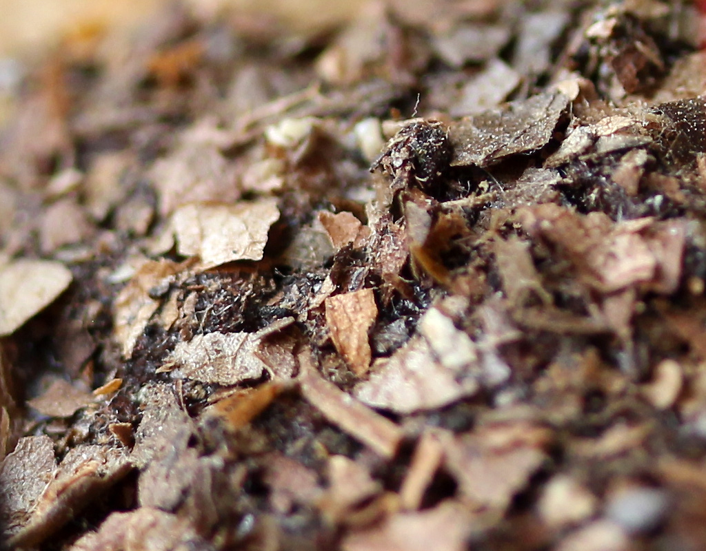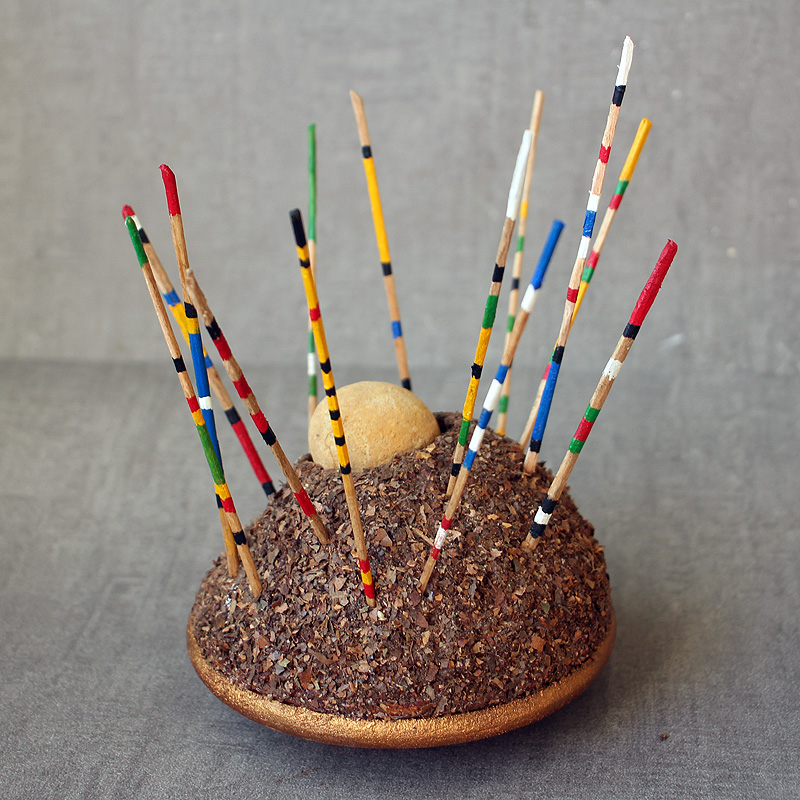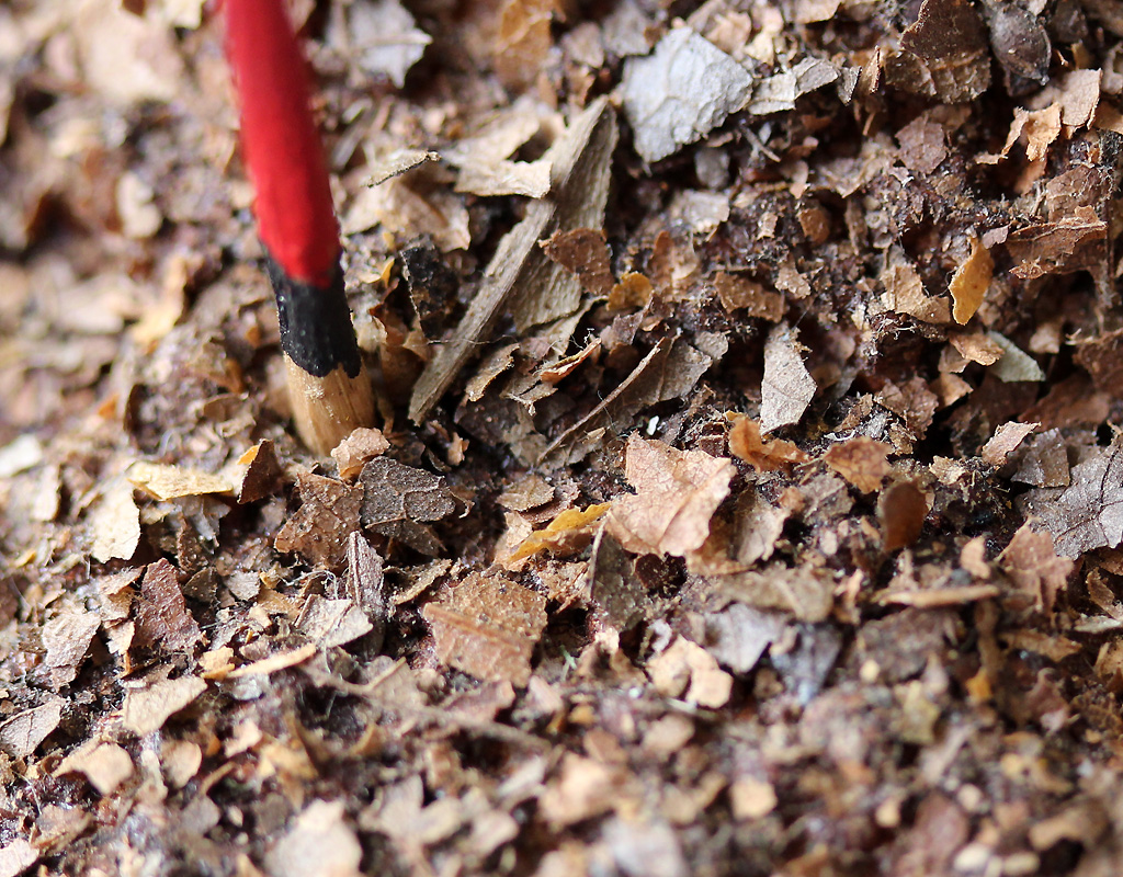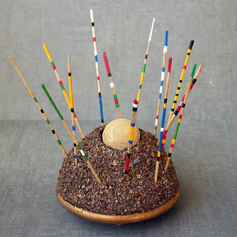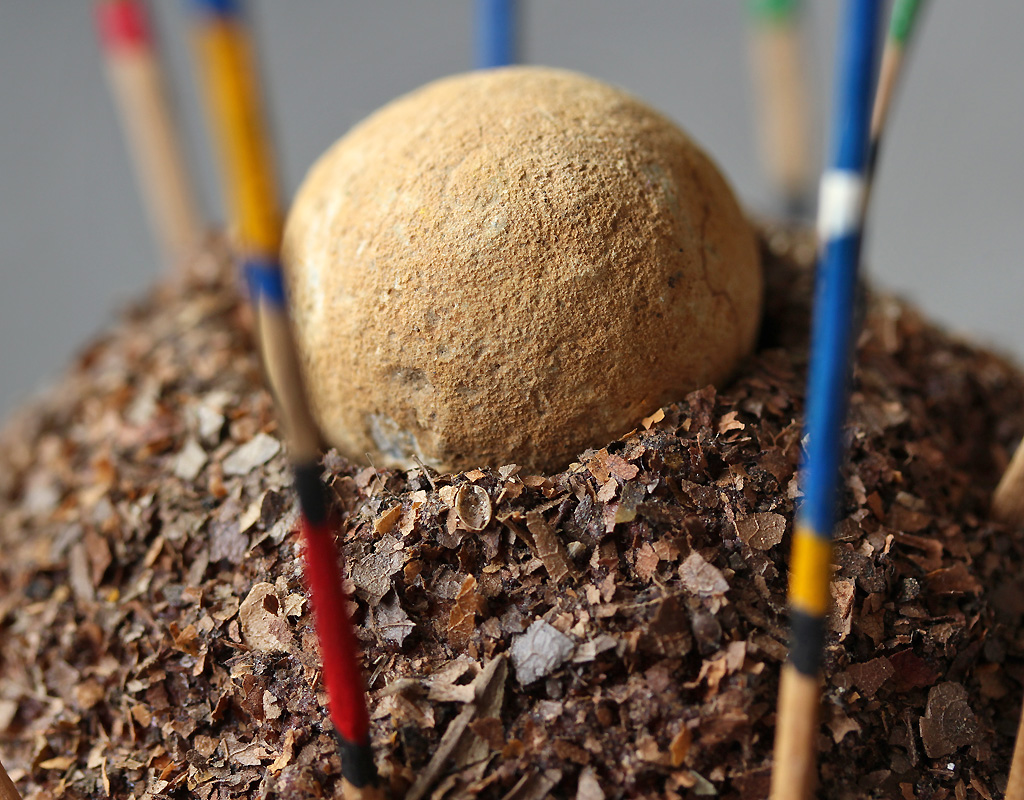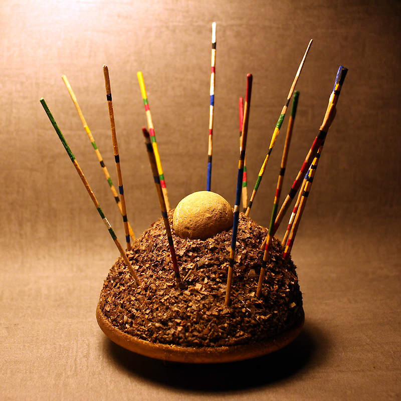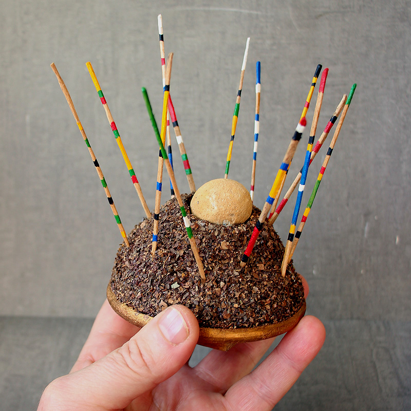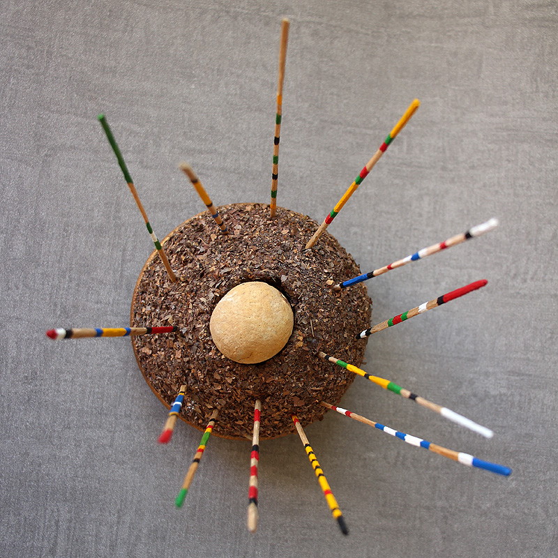 13 × 15,5 cm - Bois, polystyrène, enduit, feuilles mortes, fossile, acrylique, dorure - novembre 2025