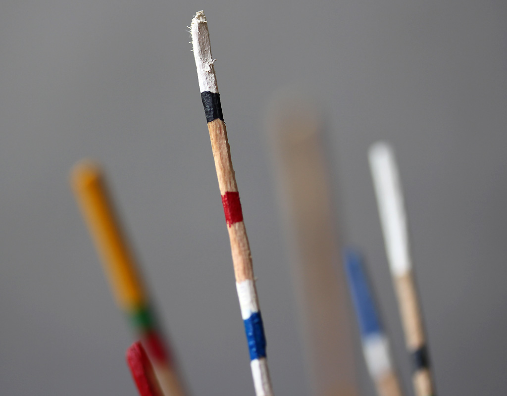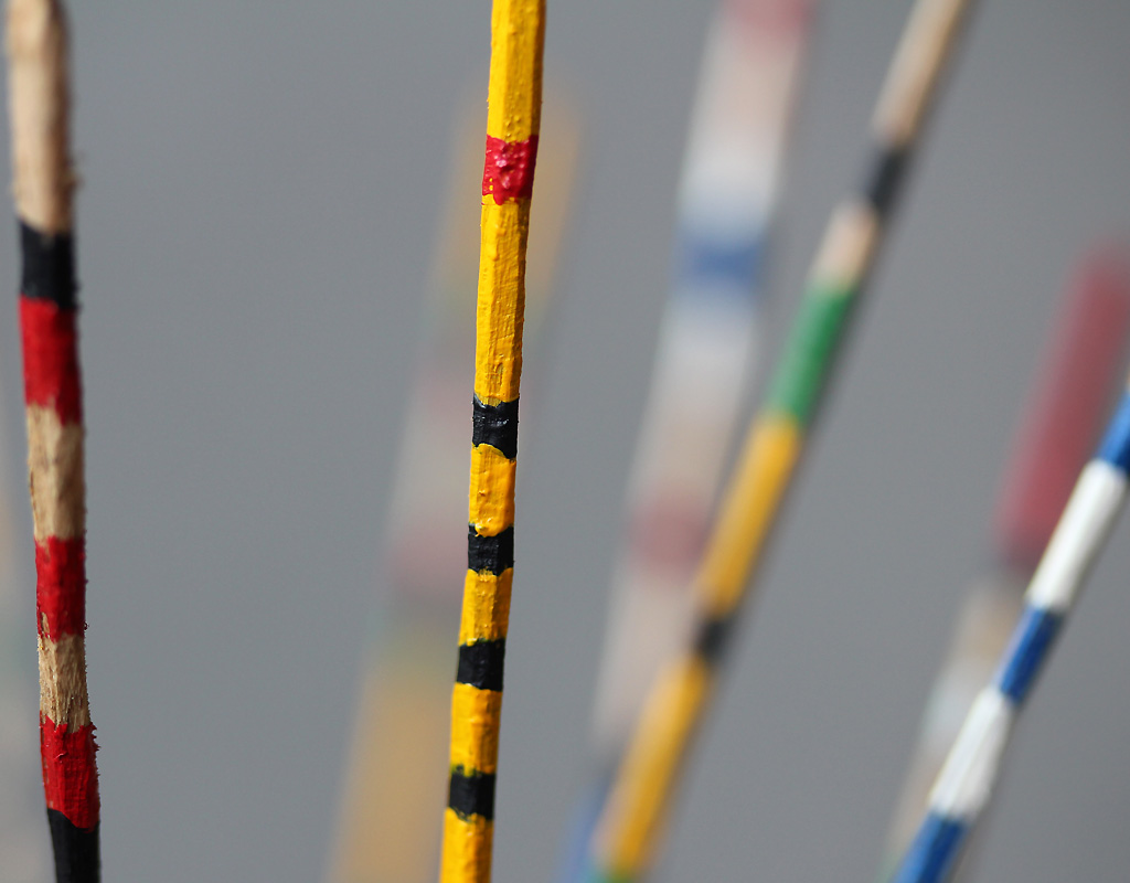 | Le petit tertre est probablement artificiel et situé dans une forêt car il est couvert de feuilles mortes. Les groupes humains qui honorent ce lieu sont peut-être plus proches des Amérindiens que les Lapons, en regard de la diversité des couleurs pour décorer leurs bâtons mémoriels. |