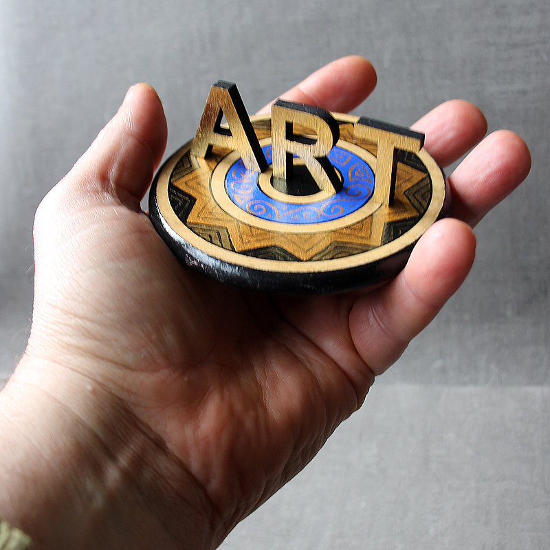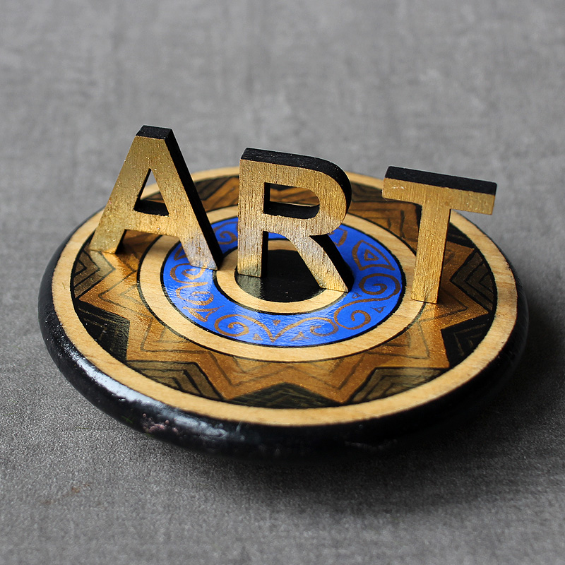 | ART, en lettres d'or, sur un motif « à la mode de Bretagne ». |