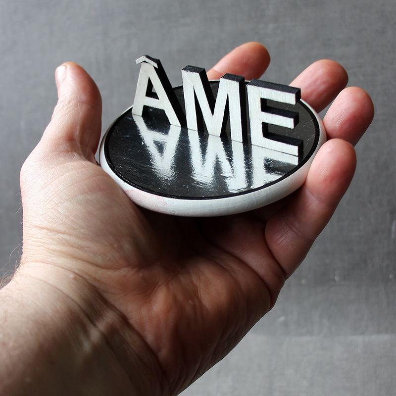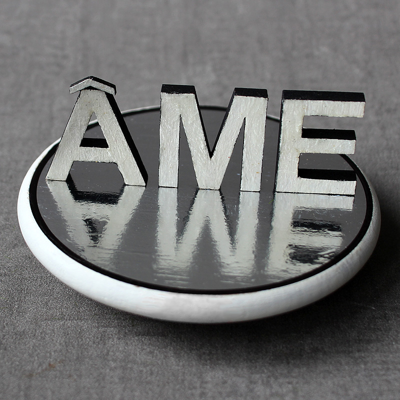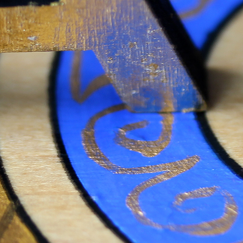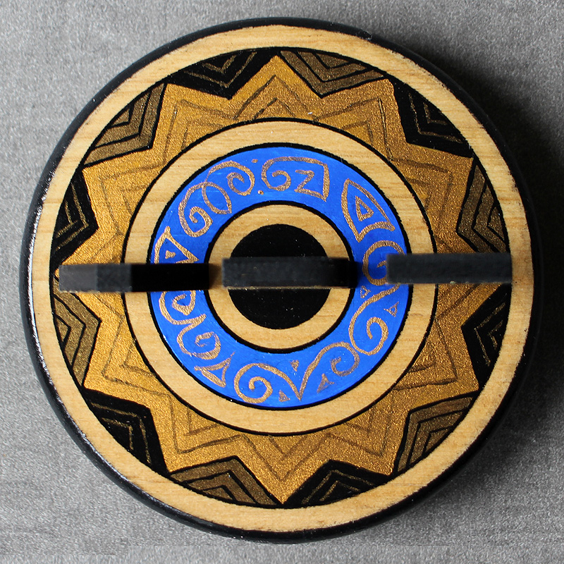 Ø 9,5 × 5 cm - Bois, plastique, papier miroir, acrylique, peinture phosorescente, dorure, feuille d'or - janvier 2026