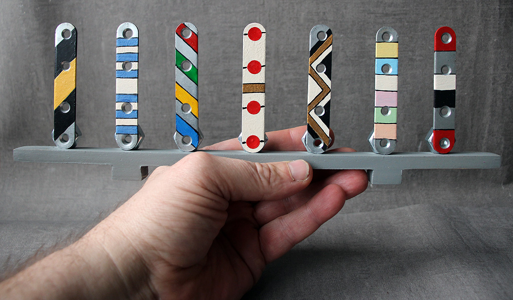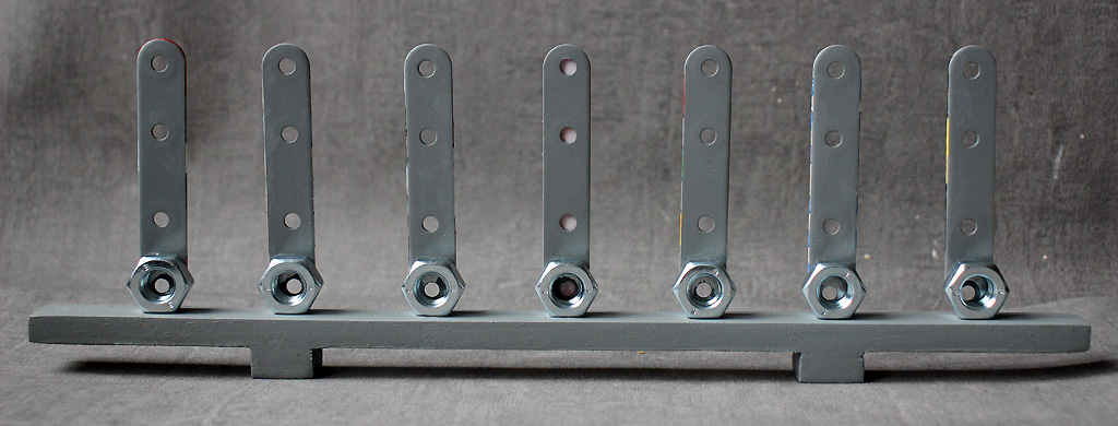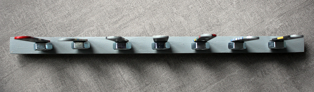 | C'est plus ici une simple œuvre de déco, que de l'art intellectuel. Or je ne hiérachise pas, et mets la même énergie dans l'une comme dans l'autre. Ceci dit, le principe de cette série d'Alignements porte en soi-même un mystère significatif... |