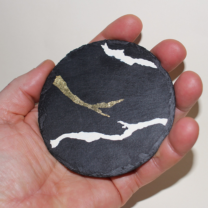 Ø 9 cm - ardoise, acrylique, laque, feuille d'or - janvier 2026