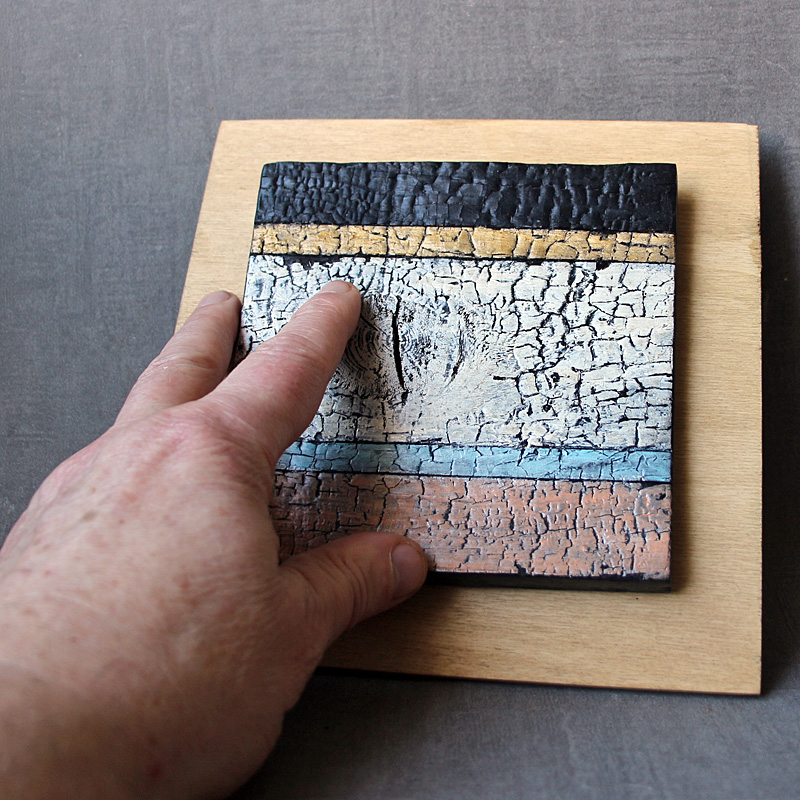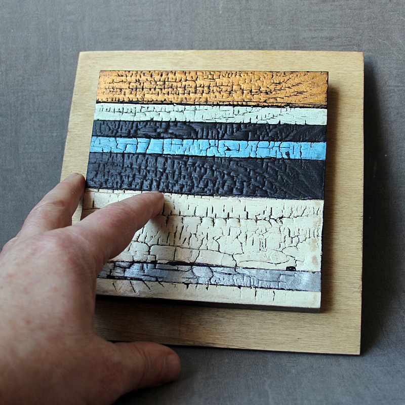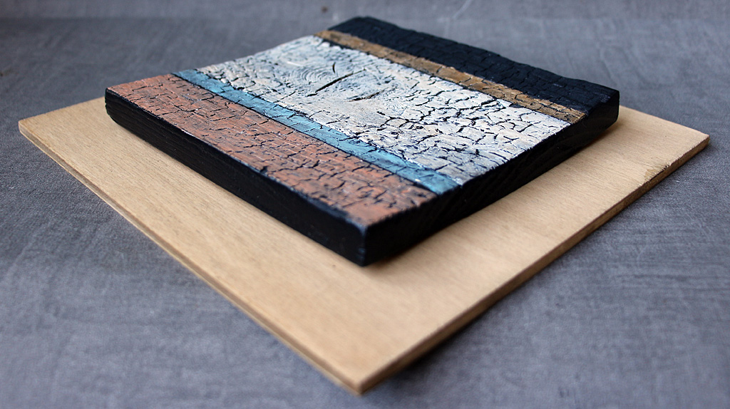 Deux nouvelles pièces en bois brûlé (au chalumeau) et peintes.