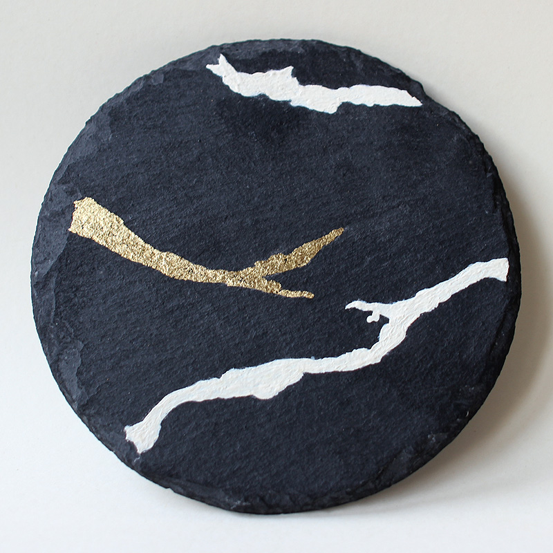 Ø 9 cm - ardoise, acrylique, laque, feuille d'or - janvier 2026